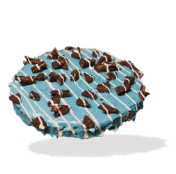 A towering waffle creation topped with crunchy Oreo chunks and creamy chocolate. Sweet and crunchy textures blend perfectly together. A fun and decadent treat to share.